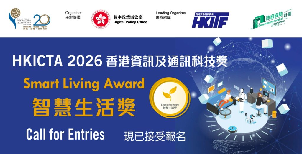 Organised by the Digital Policy Office and proudly hosted by the Hong Kong Information Technology Federation (HKITF), the Hong Kong ICT Awards 2026: Smart Living Award celebrates groundbreaking innovations that enhance modern living through advanced ICT solutions.